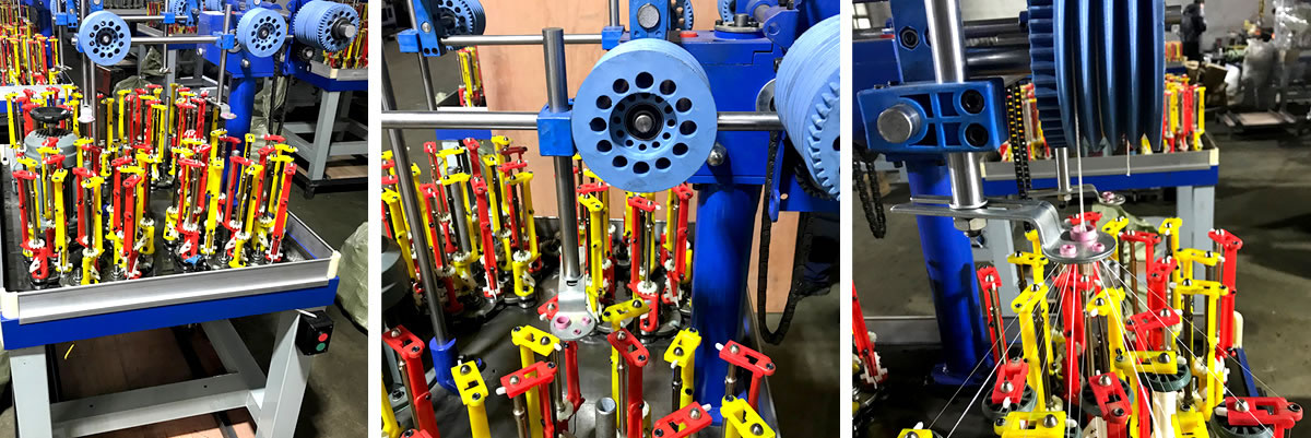 The high speed braiding machine we produce are commonly used to braid many kinds of both round and flat ropes/cords/laces (shoelaces, handbag laces, tow ropes, luggage ropes, fishing line, fiberglass sleeves, high pressure rubber hoses, decoration ropes, aerial ropes, elastic ropes, etc) and cables (high temperature wire, shielded cable, stainless steel wire braided flex hose, etc.)
