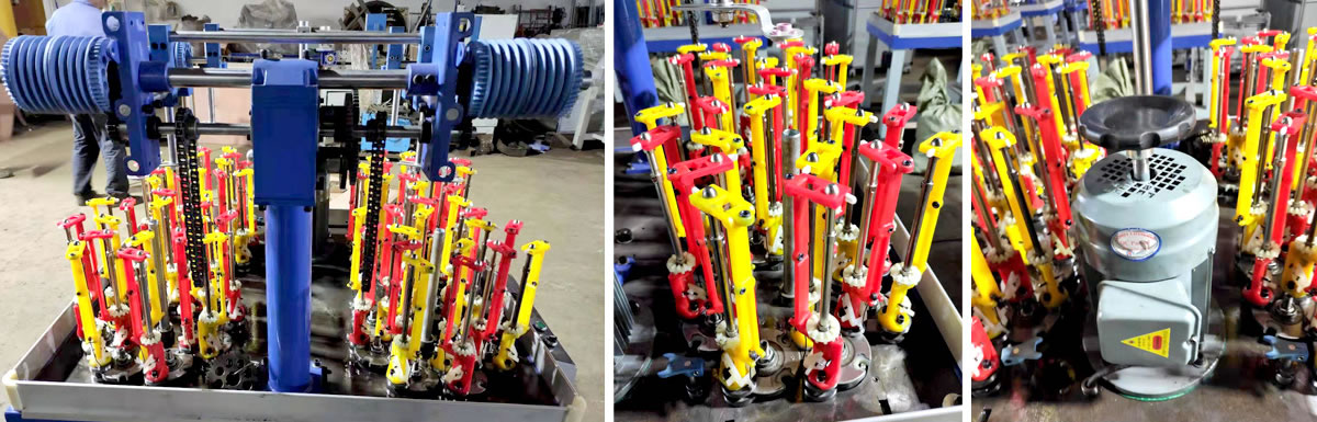 我公司生產的90系列編織機被廣泛的用于編織各種圓或者扁的繩帶(鞋帶、手提帶、拖車繩、行李繩、釣魚線、裝飾繩、高空強力繩、松緊帶等)和電線電纜(高溫導線、屏蔽線、布花線等)