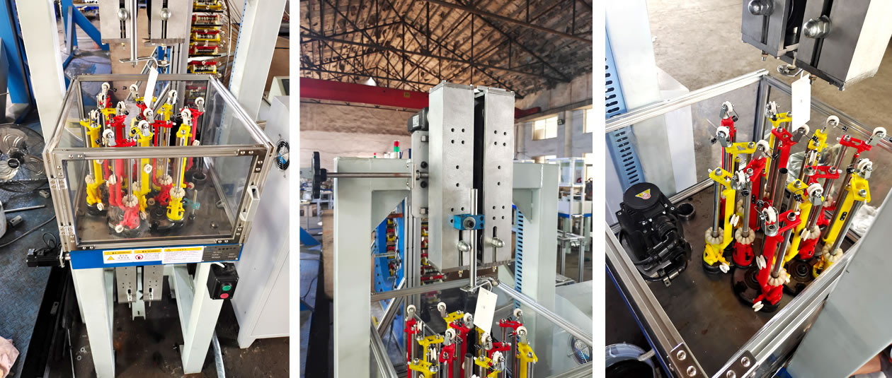 七星直供110-24錠有芯高速編織機,1.芯棒ø1.5-ø8 2.彈力氨綸絲,履帶式牽引,履帶短,機架下帶履帶式頂推,30-70度的編織機角度,普通三孔穿線板,110帶搖頭加長電線錠,紗管55*163,含中心芯管,中心芯管上端帶芯棒定位 。伺服電機驅動,3.2kw 220v 專配電器柜,半封閉罩。