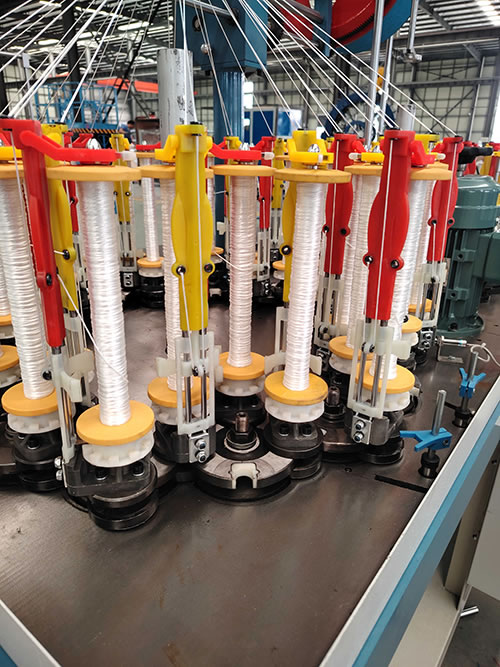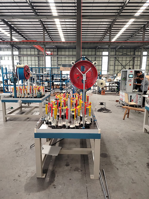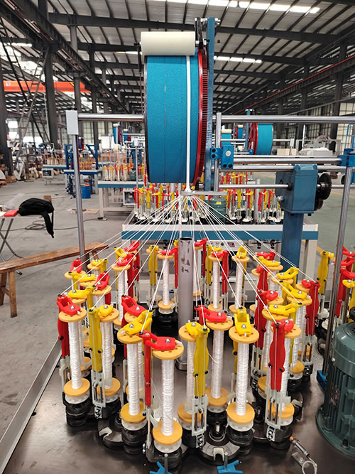 130-32*2電機1.5KW,編織繩子10-35mm。1、帶計米,錠子可以改成雙走 3、4、32錠、48錠含撐線圈分別Φ300,5、電壓380V,70*213紗管??蓲炀€出廠。