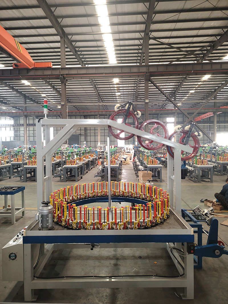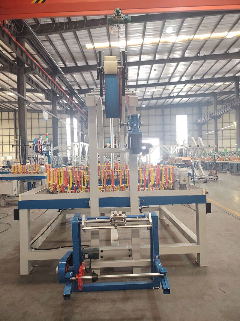 所有編織帶收排線500標準線,編織成品:玻纖套管。材料:玻纖。1、120錠收線方式為3滾筒(滾筒排序非水平,做成漸低的),伺服控制(僅收線,不用觸屏),伺服收線帶點動功能(點動的時候編織不動),編織機為變頻器控制。2、帶收排線的同時需要帶壓輥牽引+落線架做到2用,壓輥用光面的,分線輪要做編織機中間,滾筒在后面,水平軸直接帶動滾筒不要用鏈輪。收線架不要用方管,為保證穩定性建議用30粗軸。 3、所有編織的滾筒邊齒要用金屬材質。4、排線做成帶角度的,下面卡裝線盤的地方做成螺絲固定的。5、編織機電箱統一都在左側。編織機配附減震墊,額外帶32個常規機型減震墊。加裝2色警示燈。6、所有鏈條的位置加裝鏈條防護擋板。380V三相益電通90錠子(0.6簧),紗管47*142,可纏繞膜密封。