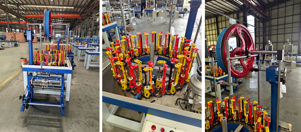 1、編織通氣繩,斜滾筒牽引,帶收排線架,帶自制線盤,按臺數配?! ?、 48錠編織20mm。 3、芯線傘桿用粗桿,大夾線器,帶斷芯線自停裝置。中心芯管,38...